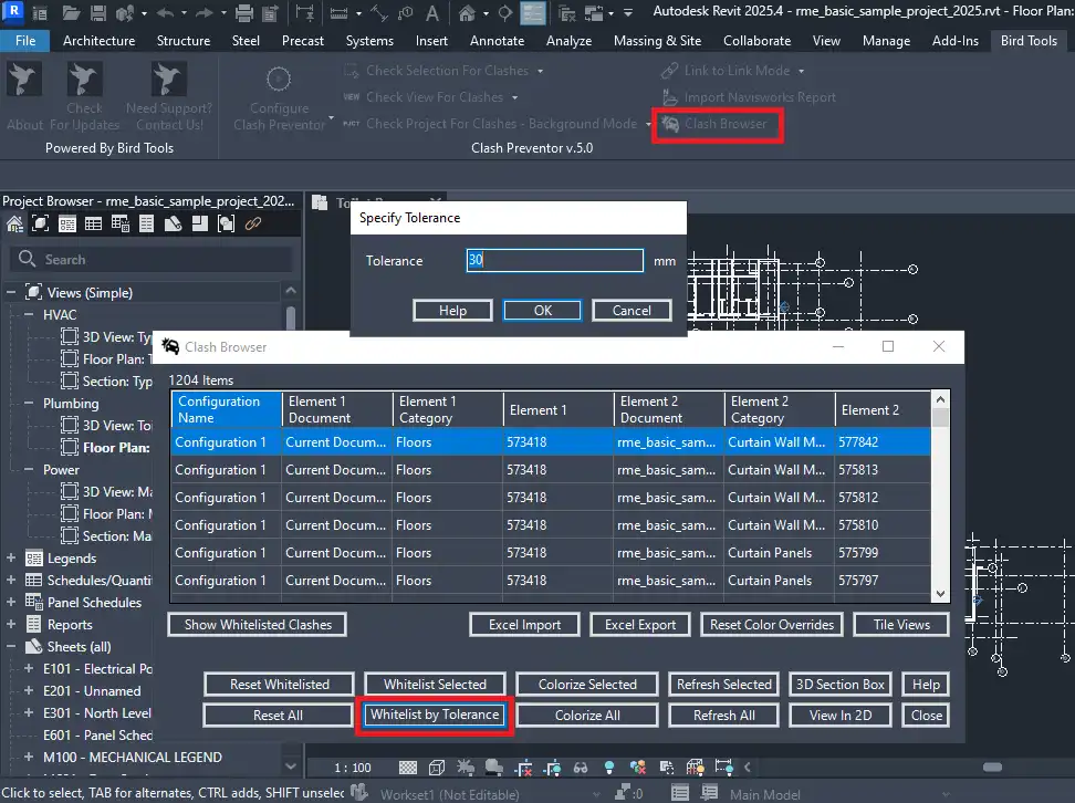When clashes are detected, Bird Tools - Clash Preventor simplifies the resolution process by allowing users to navigate and visualize clashes in 3D. The tool automatically creates a section box around the clashing elements, making it easier for users to identify and address the issues. Additionally, users can tile all open views to improve visualization while solving clashes. The built-in Clash Browser generates a Clash Report that can be exported to/from Excel®, streamlining the clash resolution process and facilitating collaboration between project team members.