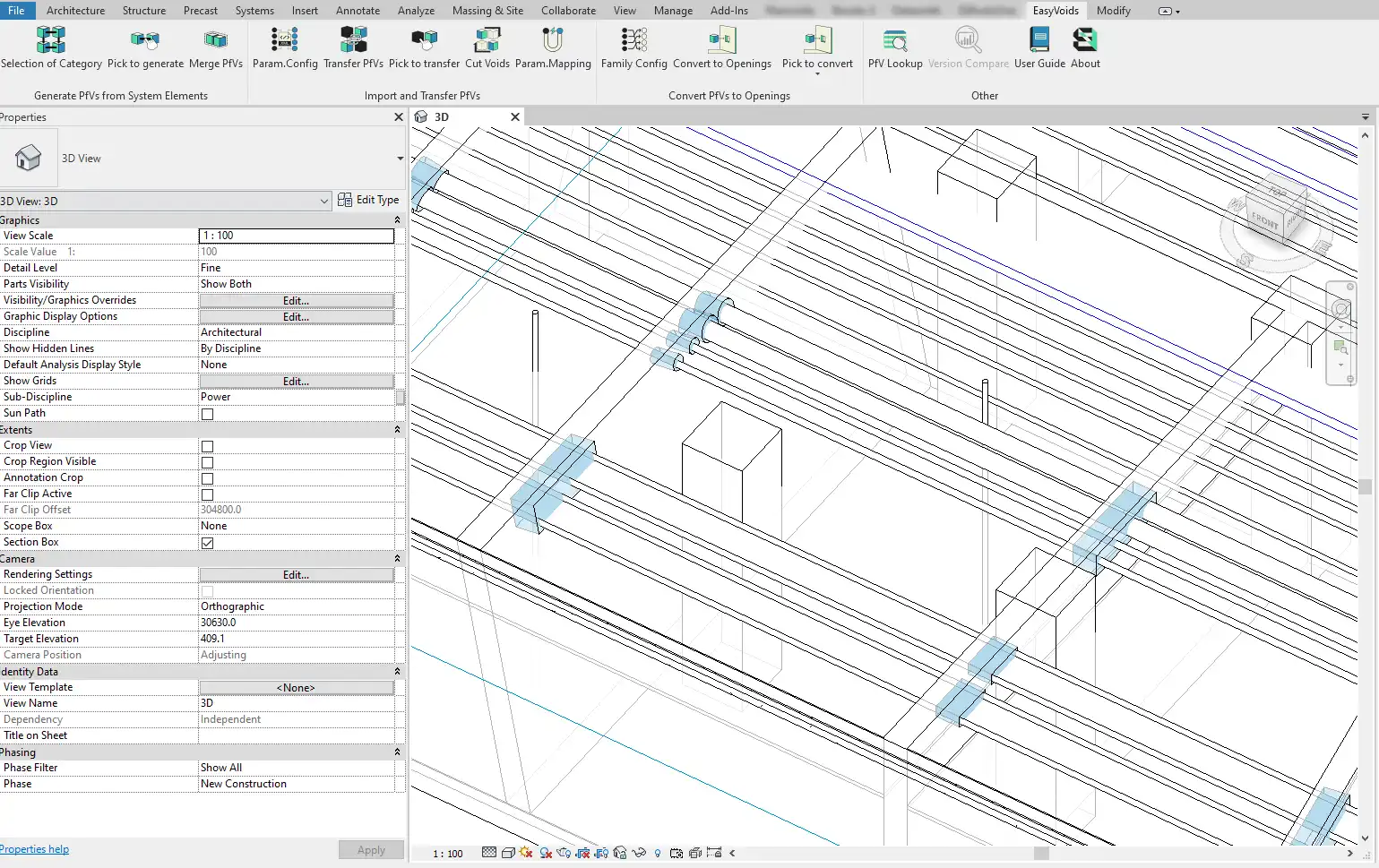 One of the most innovative features of EasyVoids is its ability to convert PfVs into penetrations or recess using user-native opening families. This allows users to easily transition from the planning phase to the implementation phase, ensuring that the design intent is accurately translated into the final construction.
