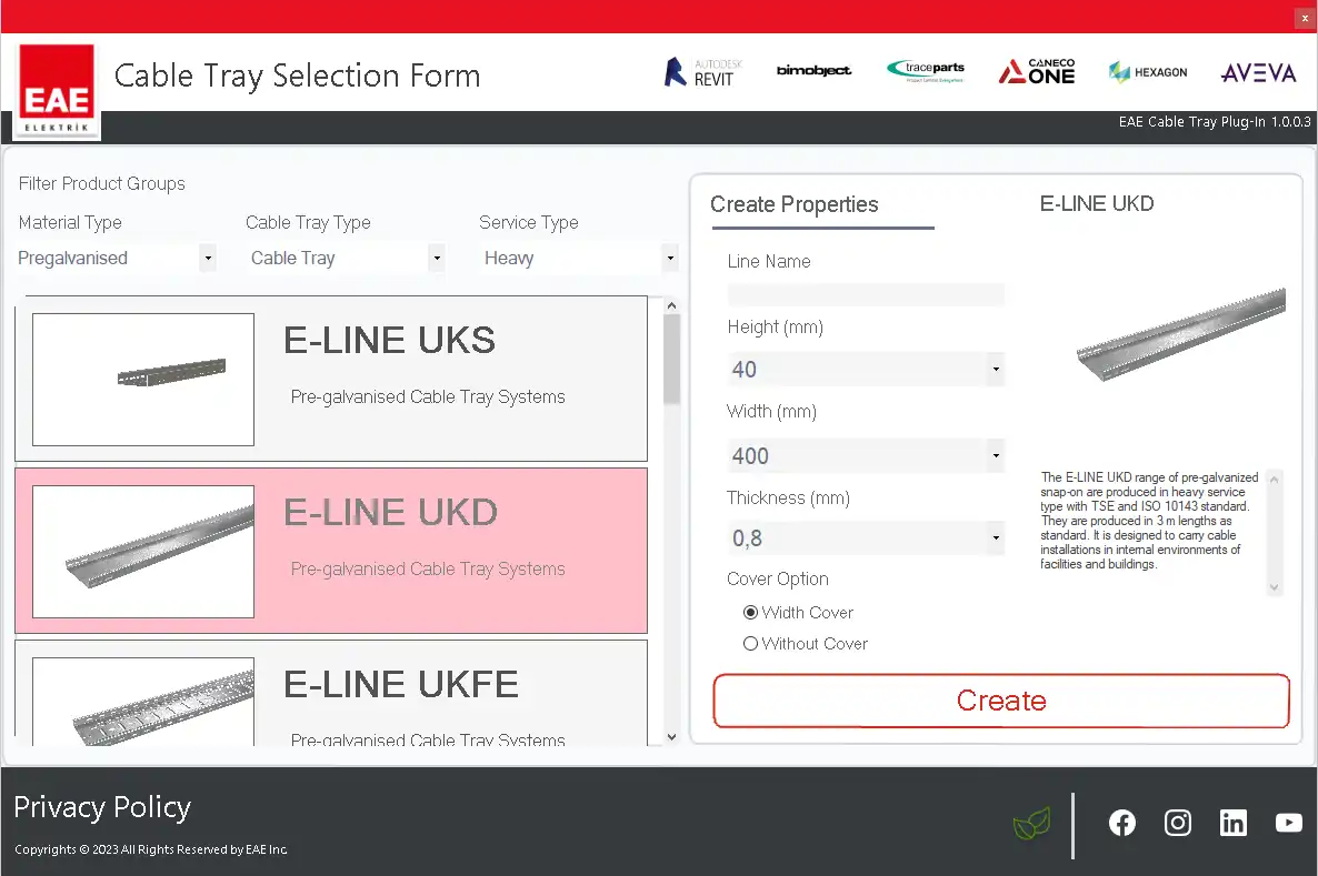 Additionally, the plugin operates on a cloud-based platform, ensuring that users always have access to the most current data and product information. When there are updates to cable tray parameters or new products introduced by EAE Electric, users can rest assured that they are working with the latest resources. This real-time connectivity enhances the user experience and eliminates the need for manual updates or downloads from external sources.