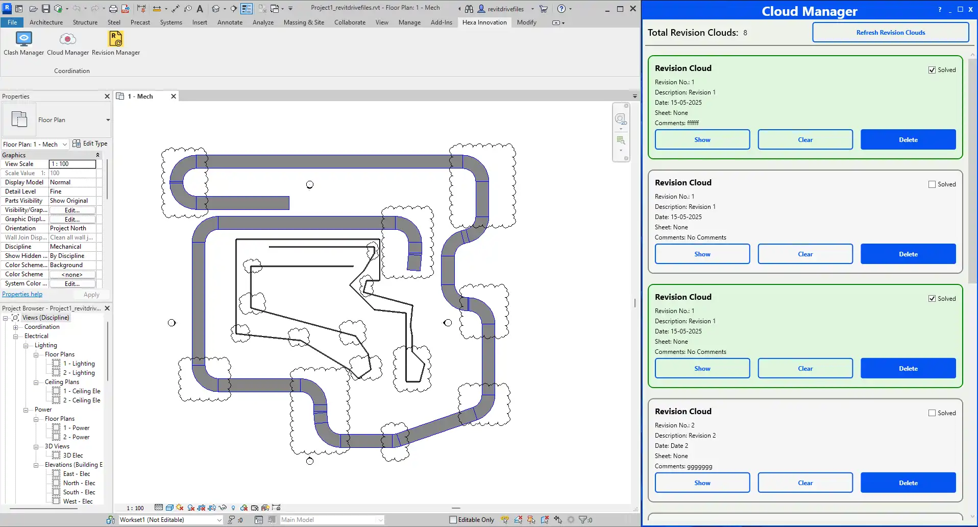 As architects and designers working in Autodesk® Revit®, managing revision clouds can be a tedious and time-consuming task. However, with the help of the Cloud Manager plugin, this process becomes much more efficient and organized. This innovative tool offers a range of features designed to help users find, review, and manage revision clouds quickly and safely, all without interrupting their workflow.