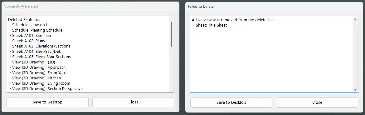 - A final summary log that lists items deleted successfully and items that could not be deleted.