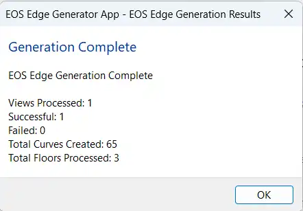 - Regenerate EOS Edges: Use this option when you make changes to floors to update the slab edges. The tool will remove old edges and recreate the new ones.