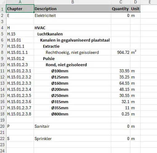 Additionally, the plugin offers Grouping by Parameter, which allows users to group exported data by system type, size, or other key parameters. This feature provides users with greater flexibility in how they structure and organize their BOQs, making it easy to customize the output to meet specific project requirements.